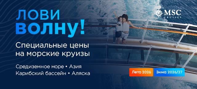 Бронируйте круизы из определенного ассортимента сезонов «Лето 2026» и «Зима 2026/27» (с отправлениями по декабрь 2026) по специальным ценам!